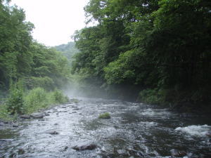 Z川は豊かな森に囲まれたたいへんいい川である、などと感想を胸に抱いていると急にざーっと降ってきた。