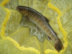 その後、少し下流に移動してみると魚の反応が出始めた。残念がら数匹を糸切れで逃がしてしまったが、それでも1匹少し大きなのを釣り上げることができた。