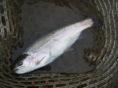と思ったが、釣り始めるとすぐに雨が降り始めた。最初は小降りだったのでめげずに釣っていたが、そのうちものすごい勢いで降り始めた。雨具を持ってきていないので管理棟へ逃げる。