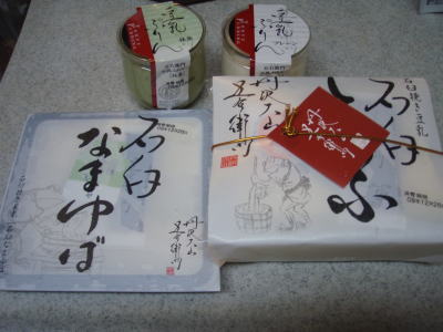すばやく五右衛門で豆腐、ゆば、プリンを買って帰る