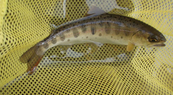 水温は10.9度あるので、巨大アマゴのアタックを期待してドライフライを流し続ける。