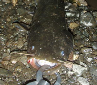 ぐりぐりと巻き取るとあまり大きくないが今年初のナマズ。