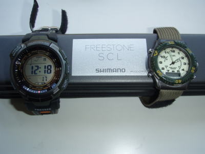 前回の釣行記で、川に2回はまっても健気に動く時計(右)のことを書いたが、
