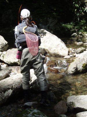 予感通り今日のK沢は好調。イワナは教科書通りのポイントに入っていて食い気が十分。あまりにのんびりイワナがフライに出るので、私もMさんも何回か早合わせをして失敗してしまう。