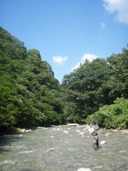なぜか標高のあまり高くない川を選択してしまう。しかもN川は大きな川なので日影が少ない。