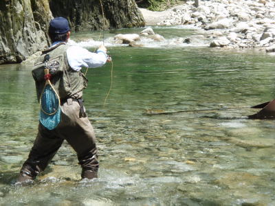 水温は20度だ。これはダメかなと思っていたが、ヤマメ、イワナが釣れる。