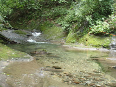 K沢は森に覆われておりとても涼しい。渓流釣りはこうありたい。