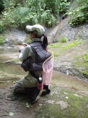 一美さんはぽつぽつ釣っていくが私には才能がないらしく、魚がなかなかフライに反応しない。かかっても逃げられたりしてしまりがないのである。