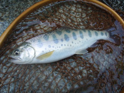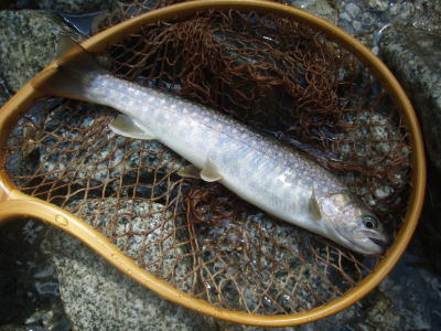 ここのイワナはサイズは良いが、なんだかほっそりした感じ。