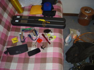 私のにベストも濡れたので道具類を干す。 同じロッドが2本になったので