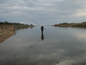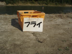 受付を済ませてから川に入ったが、私のキャスティング能力ではせいぜい川幅の半分までしか届かない。しかも川底が砂地なので、深く立ちこむとちょっと危ない感じである。
