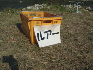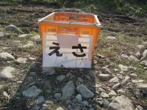 最初はこの箱の中に餌が入っているのかと思ったが、これは釣れたサケを入れる箱。