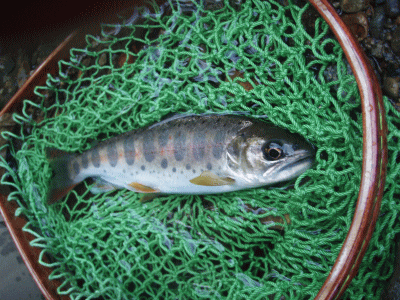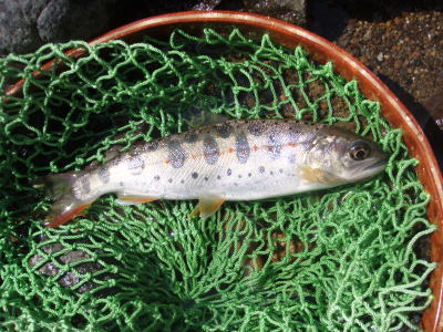 1時間くらいしてついにアマゴが釣れる。今シーズンの初釣果。