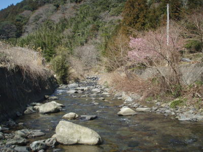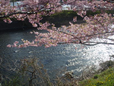 朝、桜を見に河津川へ行ってみるとずいぶんと風が強い。