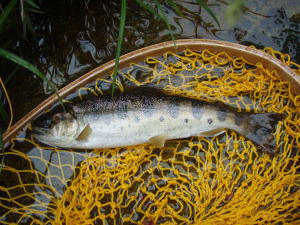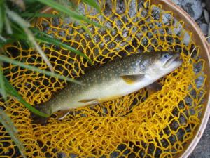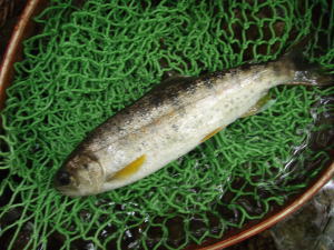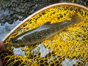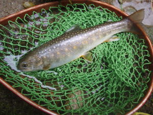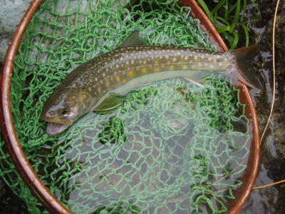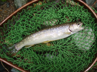 ここでも手ごたえあり。思いっきりラインを手繰るとイワナが釣れた。