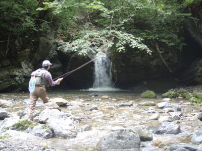 とっさにフライロッドを投げて、ヤモリのごとく岩にへばりつくと、ピタッと止まった。