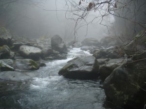 水温10度。カゲロウが飛んでいる。これは釣れるだろ、思いつつ進んでいくが、フライに反応する魚はいない。