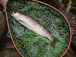 Nさんも見事イワナを釣り上げた。