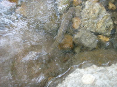 イワナを見つけてフライを流すとイワナがゆっくりフライを食べるところが見えたり、往きに魚を釣った淵を帰りに覗いてみると、もう魚がそこについていたりと活性は高い。