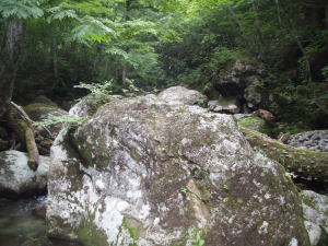 少し深い流れがある。イワナがいるとしたら流芯だろうとあたりをつけ、本日の第1投。