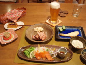 夕食の時にはビールを飲み、食事が終わってからは水を飲む。