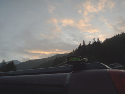 釣り券を買って、ウェーダーを履いて、ロッドをつないで、リールをつけて、フライラインをガイドに通して、リーダーを結ぼうとしたら暗くなってしまい、手元が見えないので釣りを断念。