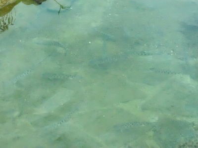 釣りを始めてみるが、釣れるのは稚魚ばかり。放流したんだろうか。