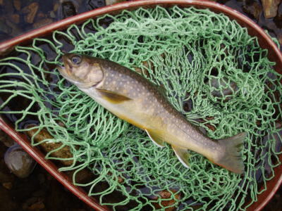 私は20センチのイワナ。桁が違うが釣れればやっぱりうれしいね。