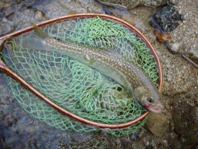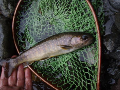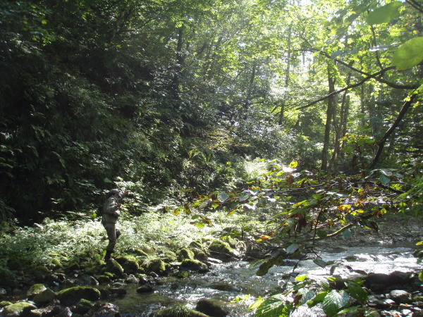 いつまで身体が持つかわからないので、川に着いたらすぐに支度をして、真っ先にキャストして、真っ先にイワナを釣る。これで今日のミッションは終了だ。