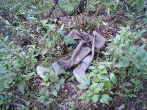 私は入渓点で滑ってしまいウェーダーが泥だらけとなる。