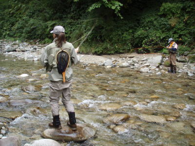 さっちゃんは普段、USAの渓流でニジマスやらブラウンやらを釣っている。1年ぶりに会うとフライフィッシングがすごくうまくなっている。距離も出るようになったし、コントロールも正確だ。私もがんばらねばな、といつものように30秒間だけ決心する。