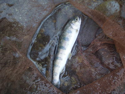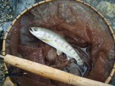 ハッチはあるのに水面を割って毛鉤に出る魚は少なく、少し沈めると釣れる。