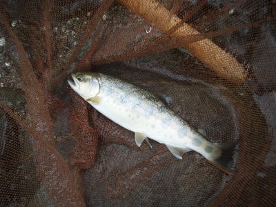 ひれのない成魚放流の魚も釣れるが、それなりにきれいなヤマメもいてけっこう楽しい。