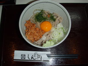 天気がやたらにいいのでこれ以上釣っても無駄と判断し、川から上がってそばを食べに行く。