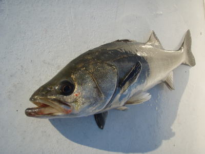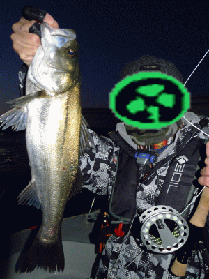 3隻目くらいでがつんと手応えがあり、さらにフライをリトリーブするとぐっと重くなった。これは65センチのシーバス。よく引きました。