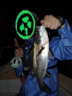 今日はだめでした。 午前0時からパラスのボートでシーバス釣りに行きましたが、シーバス(スズキ)はどこかへ行ってしまっていました。 キャプテン鹿内さんが次々とポイントに案内してくれましたが、フライに反応する魚は少なかったですね。 小さいのがやっと釣れたという感じ。 もっとも鹿内さんから熱収縮チューブの使い方を始め、いろいろ釣りのことを教えてもらえたので楽しかったです。 こういうこともあります。 次回に期待。