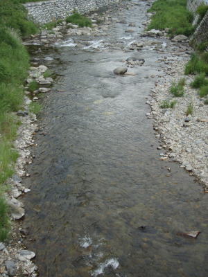 岸から離れていたので川に近づこうとしたら、フライラインが石に引っかかって前へ進めない。何度かひっぱってみたがフライラインが外れない。