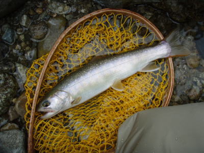 なんとか魚を取り込みフライラインをはずしに行くと、フライラインが切れてしまっていた。これまで先端が切れたことはあるが、真中からまっぷたつというのは初めてだ。