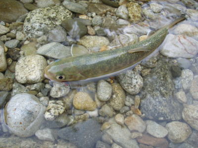 奈川には、釣りをしている人が4組くらいいたので、下流の空いている区間に入る。イワナは流心ではなく、小さなポイントに隠れていた。ドライフライを投げ入れると、こんなところに?というところからイワナが飛びついてくる。