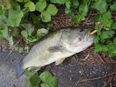 引き上げてみるとブラックバス。42センチもある。トップ専門でバスを狙う人たちがいるが、なるほど、こんなふうに釣れるのなら面白いだろうな、と思う。