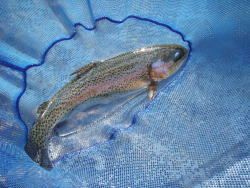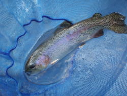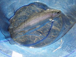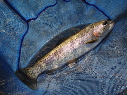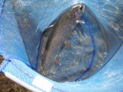 お昼を食べてからもがんばるが、ニジマスしか釣れない。