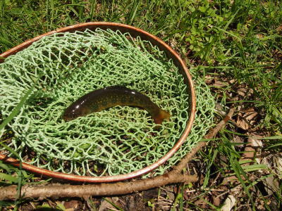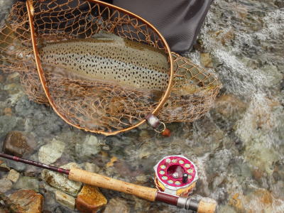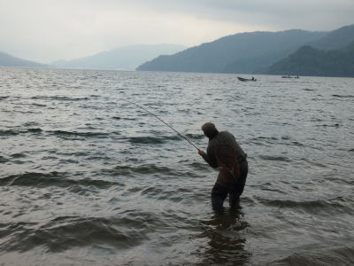 釣れるのかなと思ってみていると、近くの人が50センチ近いブラウントラウトを釣り上げる。