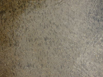 ここは本来、禁漁区だが、この日は捕獲調査をやっていて、大勢の釣り人がいる。よく見るとみんなフライフィッシング。
