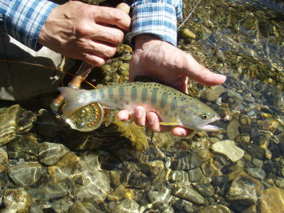 こんな大きなフライでヤマメが釣れるというのは、長年フライフィッシングをやっているが初めて自分の目で確認した。