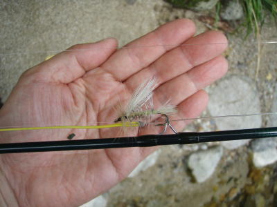 #6のドライフライで釣り始めるが、さすがに#3タックルではうまくフライが飛ばない。フライを#8に結び直して釣り再開。