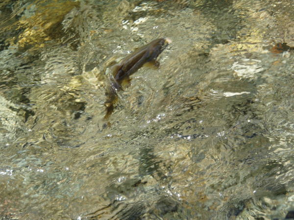 しばらくしてばしゃっとイワナが出た。やはり寒いので深いところにいるようだ。