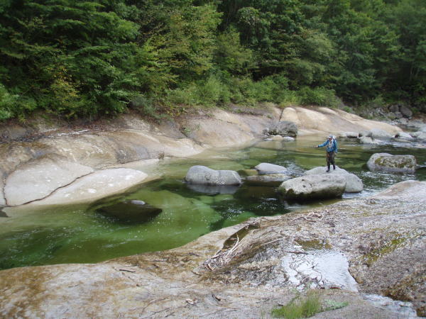 おやど風来坊のオーナー一美さんと二人で山形県のT川へ行く。