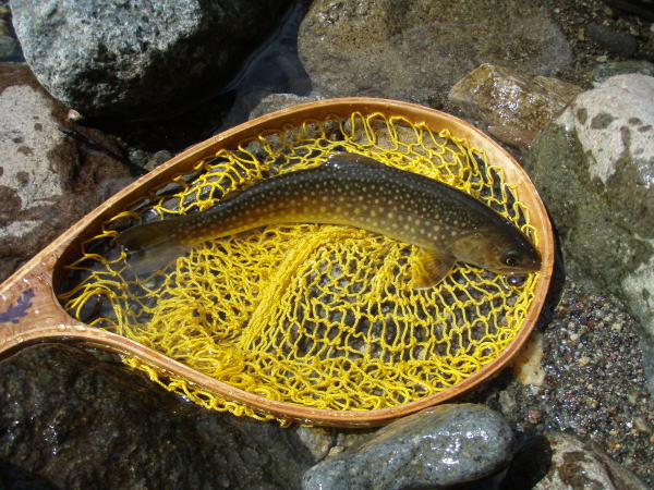 思わず叫ぶ。見事にイワナを釣りあげた。