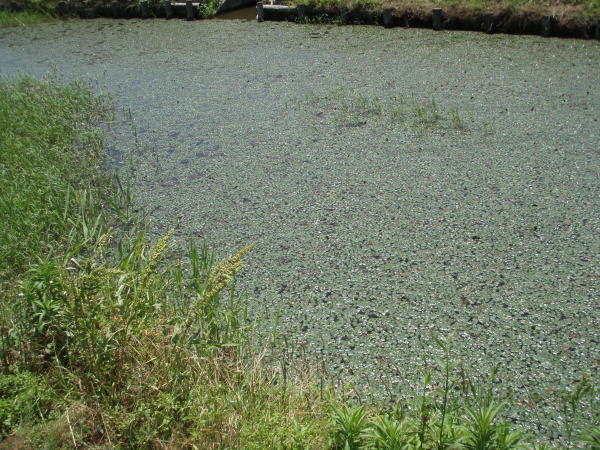 対岸にフロッグを投げ込み、リールを巻いてポチャリと水面に落とす。