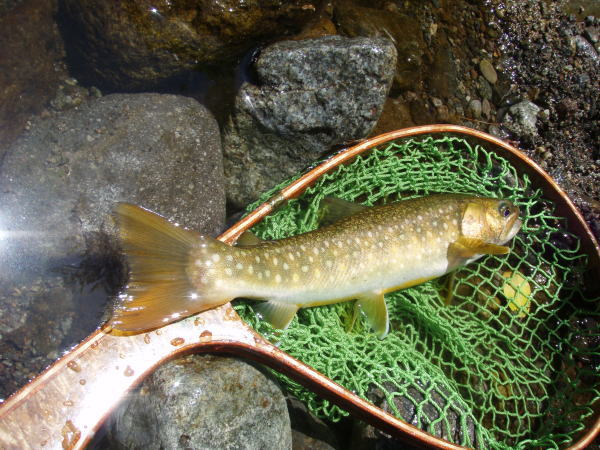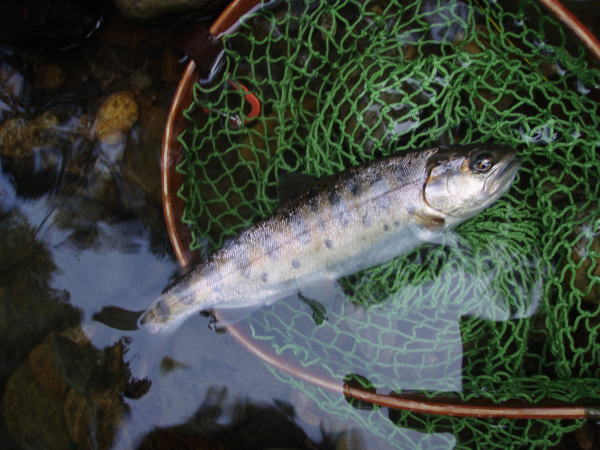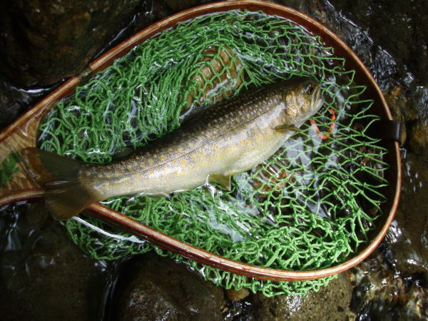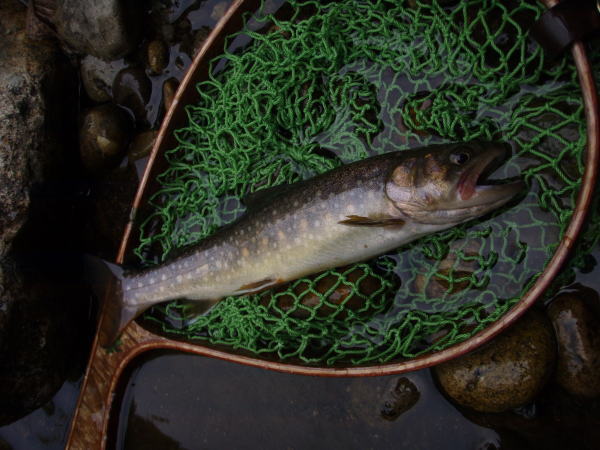 イワナは時々釣れるが、ヤマメは最後の方でやっと1匹。